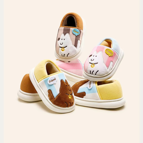 2025 invierno lindo Animal forma de algodón para niños cálido interior casa con piel Slipper para niños