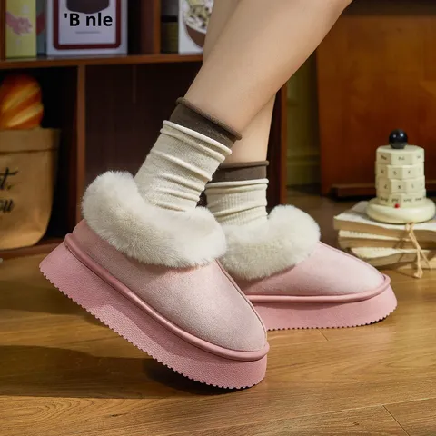 รองเท้าผ้าฝ้ายเนื้อหนาให้ความอบอุ่นสำหรับผู้ชายและผู้หญิงสีพื้นพื้นพื้นรองเท้าหนานุ่ม2026ฤดูใบไม้ร่วงฤดูหนาว